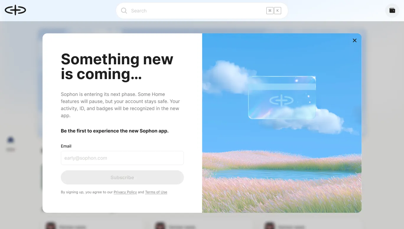 As part of this transition, we will begin removing most features from Sophon Home. It was one of our first experiments, built to explore how people engage with rewards, missions, and reputation across the ecosystem. It helped us learn what users value and how they interact with early products.