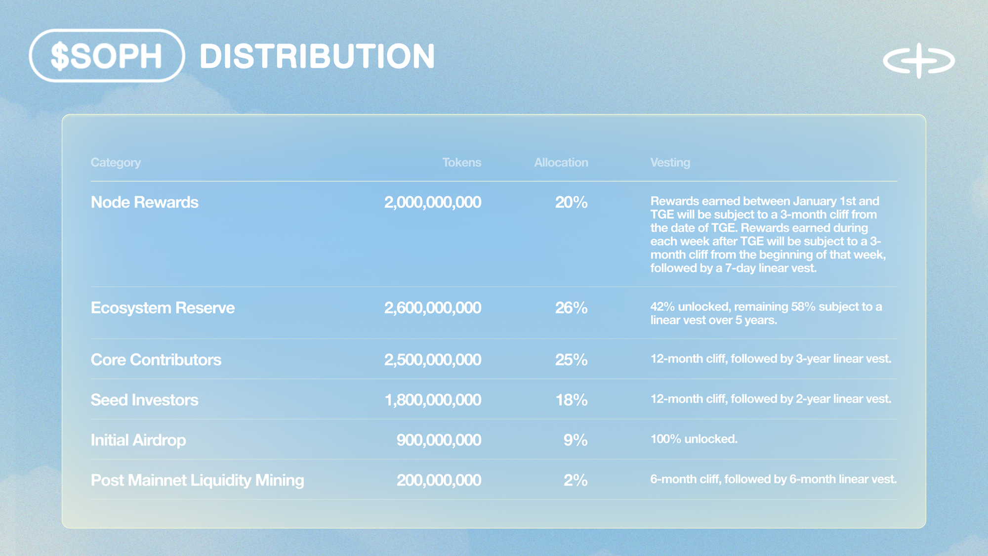 Core Contributors: 2,500,000,000 SOPH (25% of total supply)