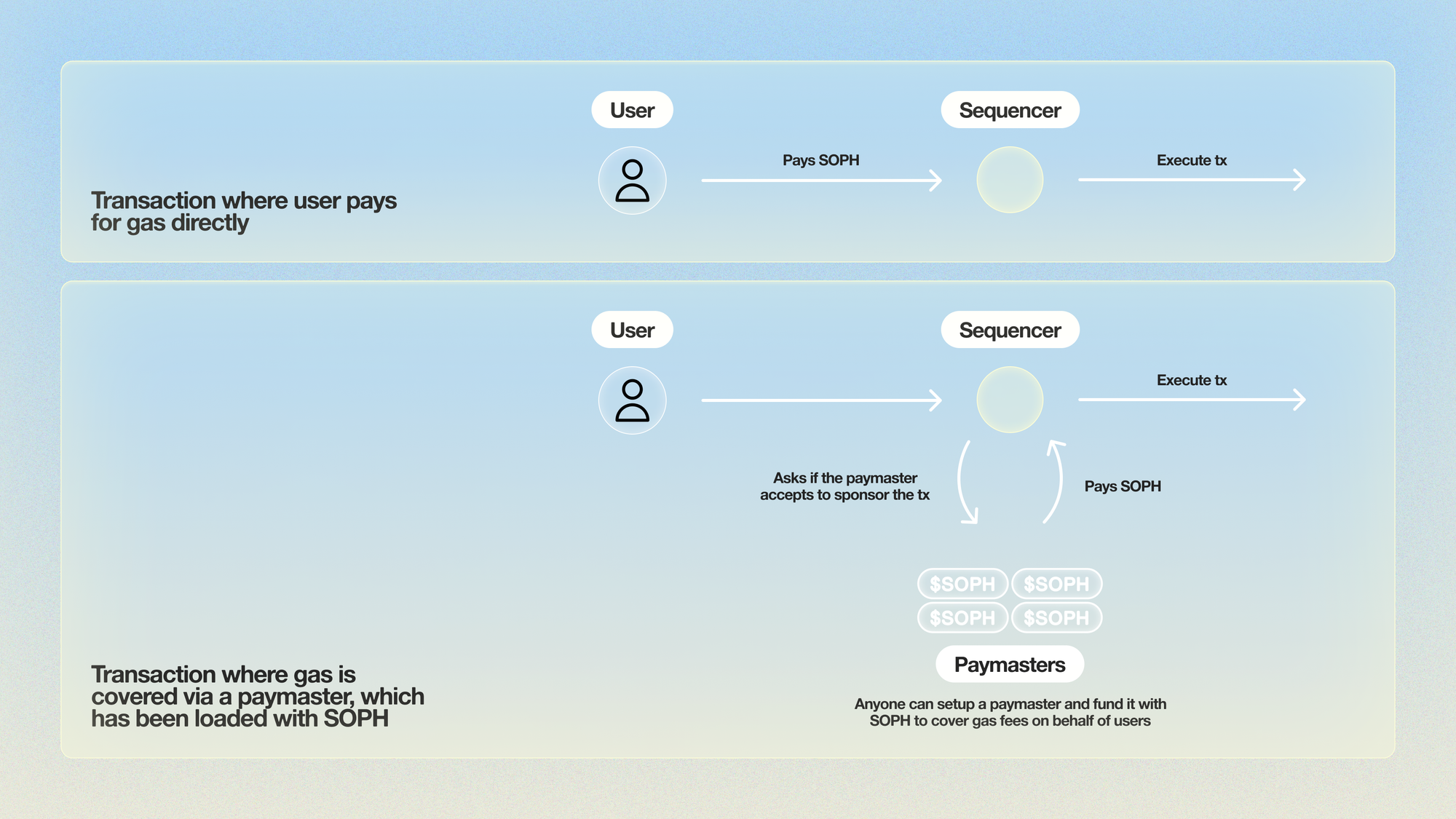 This does not necessarily require all users to hold SOPH due to ZKsync’s native paymaster technology. Paymasters are a type of specialised contract designed to subsidise or customise transaction fees for other accounts, providing a seamless user experience and greater flexibility. That means, no more being forced to bridge whenever you run out of the native gas token and depending on what you’re doing, maybe no gas to be paid at all. Check out our Paymaster page for more detail.